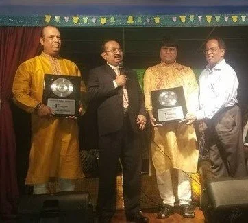 Priyatash Saha, former Consul General of the People’s Republic of Bangladesh in Los Angeles, and Maklin Chowdhury, Trustee of the Bangladesh Writers’ Association of Los Angeles, jointly honored Pandit Girish Chatterjee and his brother Pandit Ashish Chatterjee by launching the artist’s inaugural international album in Bengali. Maklin Chowdhury served as lyricist, while Pandit Ashish Chatterjee composed the music.